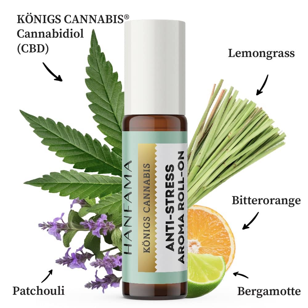Gönnen Sie sich einen Moment der Ruhe. Unterbrechen Sie das Alltägliche und finden Sie wohltuende Entspannung. Der Anti-Stress Roll-On mit 100 mg Königs Cannabis® pflegt Ihre Haut sanft und verwöhnt Ihre Sinne mit einer feinen, erfrischenden Duftkomposition aus hochwertigen Ätherischen Ölen.